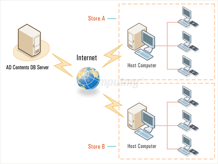 Download any updated new AD contents to the local Host PC from AD Contents DB Server through the internet while the store is in its after hours timeframe. The contents saved on Host PC are separately displayed on each monitor by scheduler S/W that is pre-configured by administrators for each UTMA terminal.