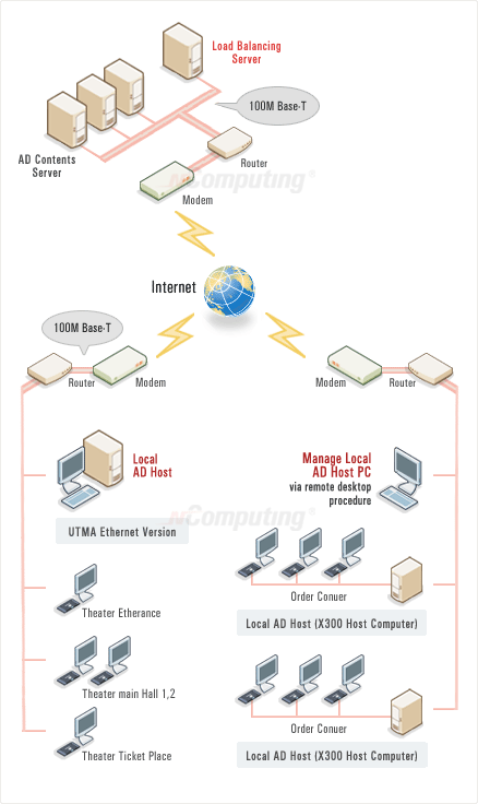 Depending on the condition of the location, contents, budget and network environment, people can use different NComputing solutions for different needs. The NComputing UTMA terminal for AD solutions can provide cost savings, and lowered efforts from maintenance, central management and variable network environments.