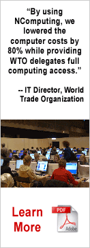 NComputing has a better solution. Instead of a dedicated PC for each station or kiosk, a single PC is used by up to 10 stations at the same time. NComputings patented technology ensures that all of the applications work normally and that the performance is comparable to a regular PC. Each user accesses the host PC via a small access terminal that is the size of a small book. For even greater efficiency, a standard server can be used to support up to 30 simultaneous users!